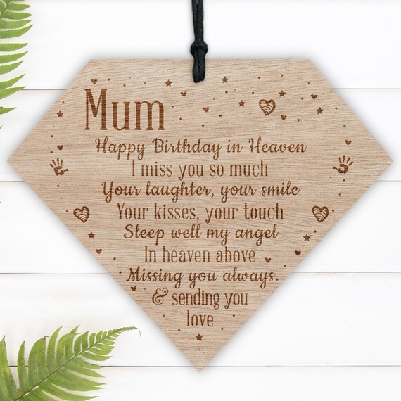 DE141 Engraved MUM Mother Memorial Birthday Plaque Wood Diamond