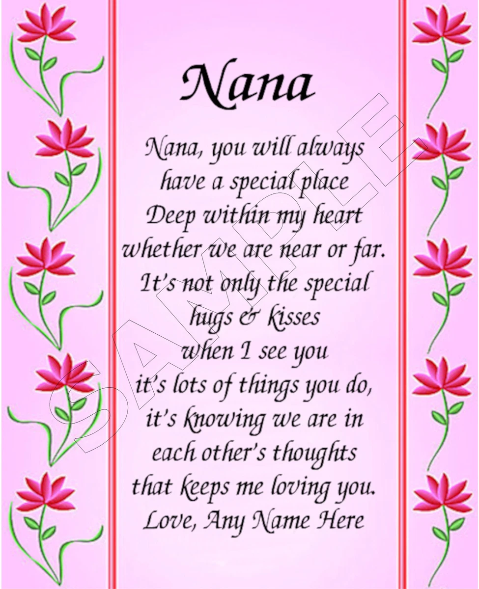 NANA PERSONALIZED PRINT POEM MEMORY BIRTHDAY MOTHER’S DAY GIFT | eBay