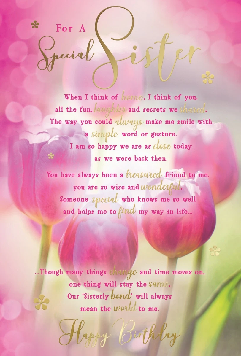 Sister Happy Birthday Card Sentiments Tulips Lovely Verse | eBay